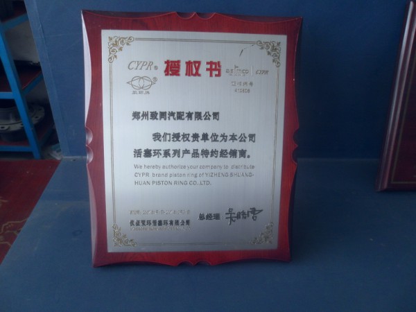 证书编号: 0002 证书名称: 授权书 发证机构: 仪征双环活塞环有限公司 生效日期: 2012年07月01日 截止日期: 2013年07月01日 认证简介: